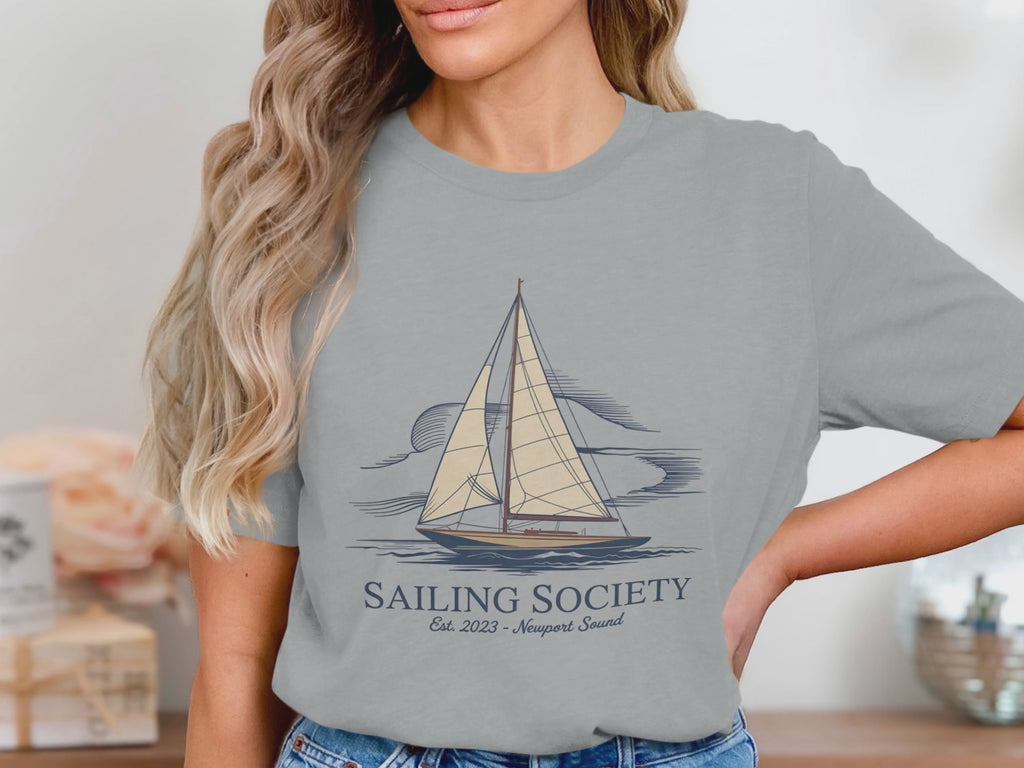 Get ready to set sail with our exclusive Sailing Society T-Shirt! This unique design features a classic sailboat illustration, perfect for anyone who loves the sea, yachting, or nautical themes.