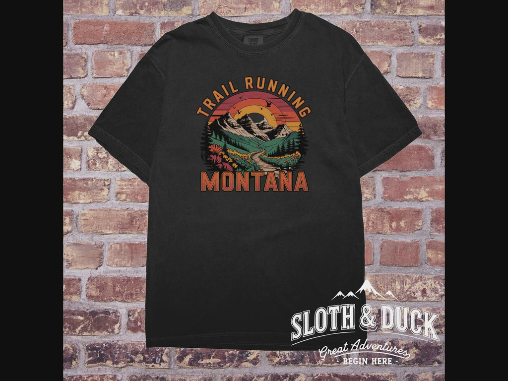 Discover unique Trail Running Montana Adventure Graphic T-Shirts featuring vibrant mountain scenery and a scenic trail to inspire your outdoor spirit.